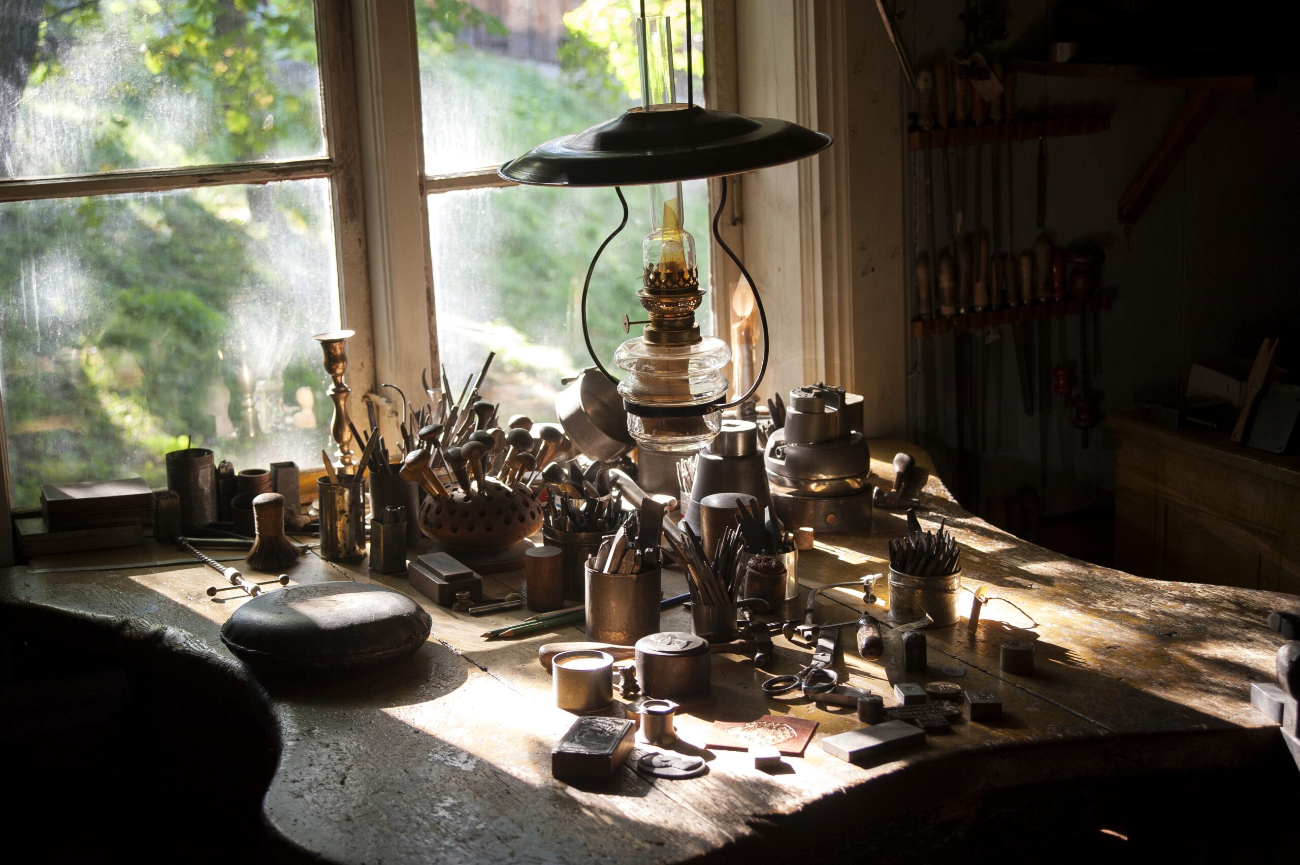 The Engraver’s workshop is situated opposite the workman’s home and is fitted out like similar premises at the end of the 19th century.