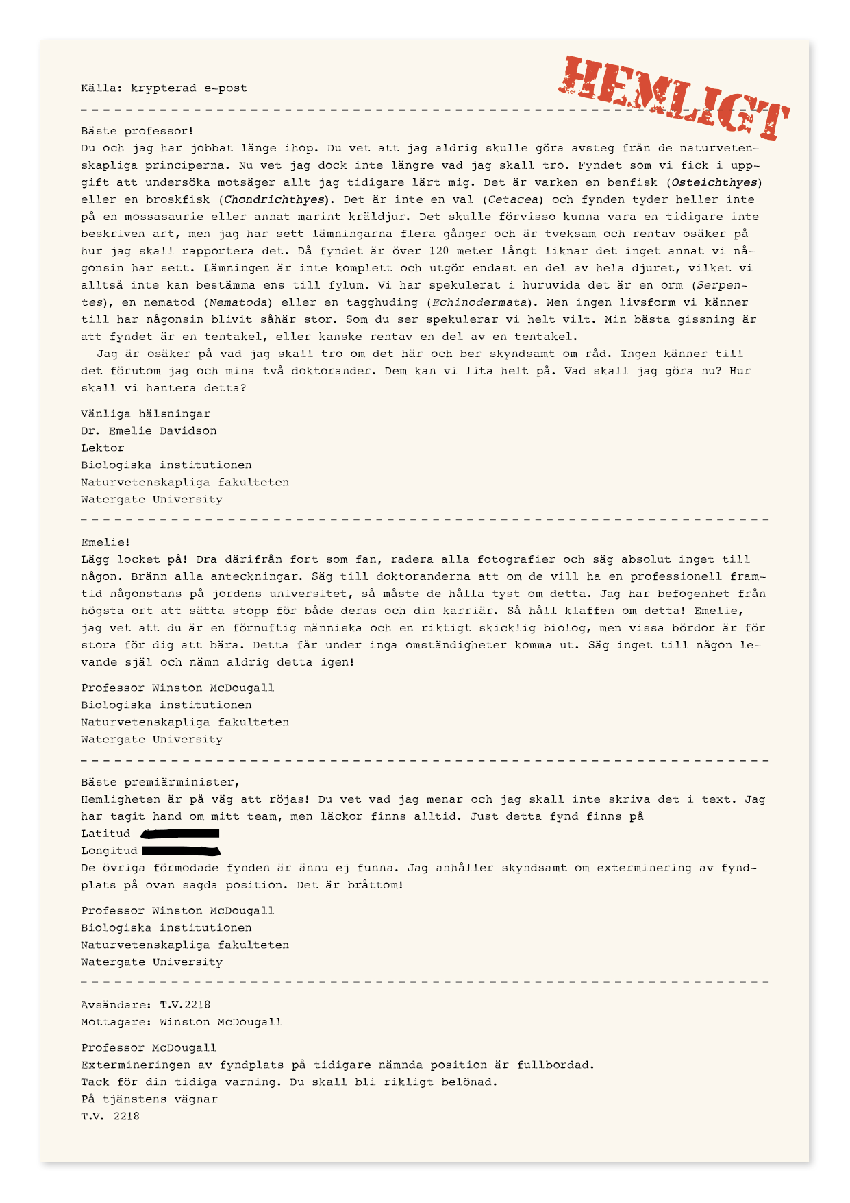 Kraken gömmer sig i det mörka havsdjupet, men vi vet ytterst lite om krakens liv. Här får du ta del av en topphemlig mailkonversation om ett oväntat och oroväckande fynd. Dessutom kan du läsa om hur forskare med hjälp av DNA kan avslöja vad som faktiskt finns där nere under ytan.