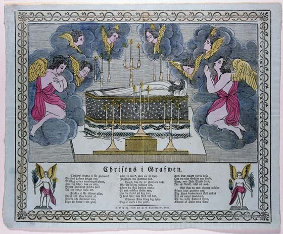 På bilden syns kistebrevet ”Christus i Grafwen” från 1849. Foto: Hans Koegel / Nordiska museet